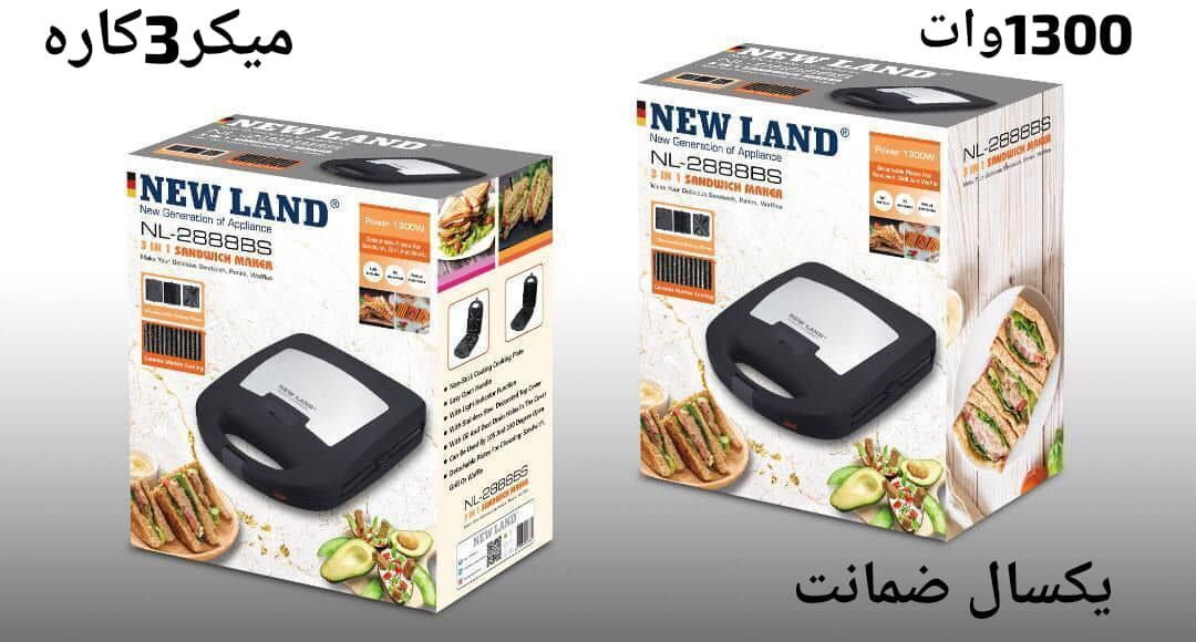اسنک ساز و گریل 3 کاره نیولند مدل 2888 توان 1300 وات