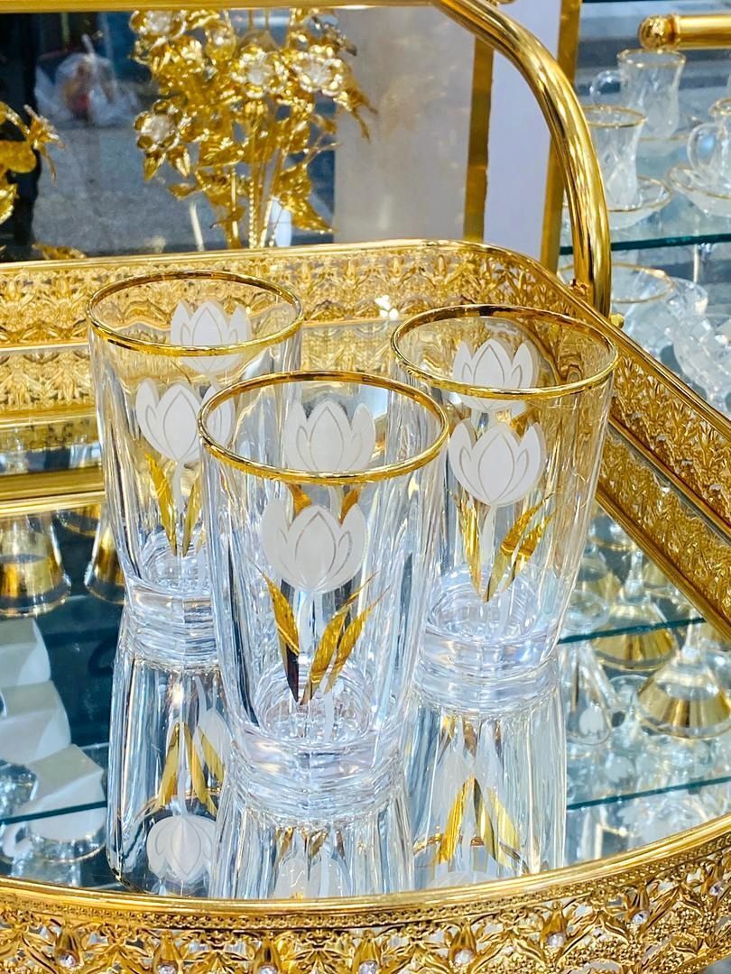 لیوان لوکس طلاکوب شده گل لاله 6 عددی