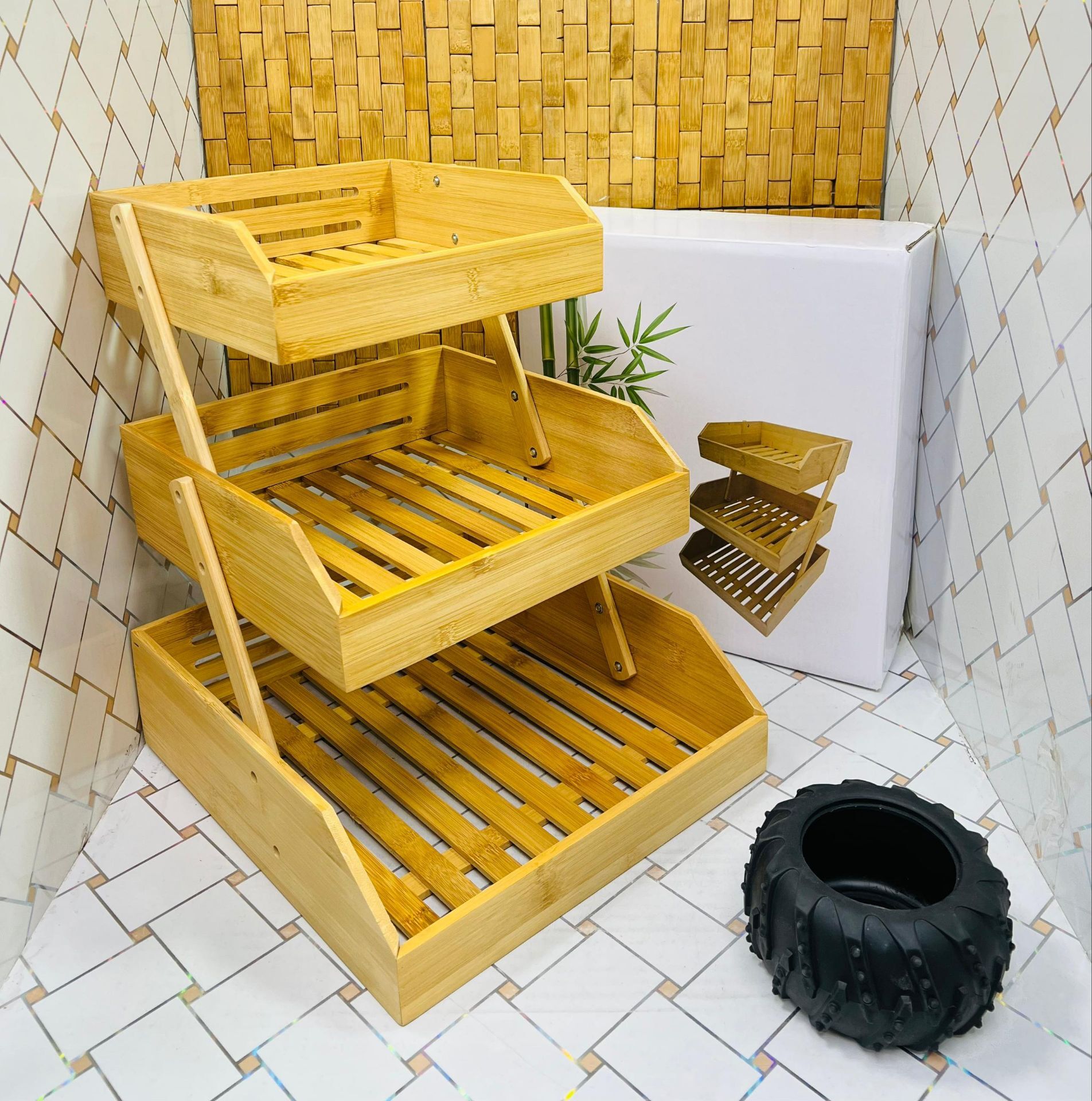 استند 3 طبقه چوبی بامبو