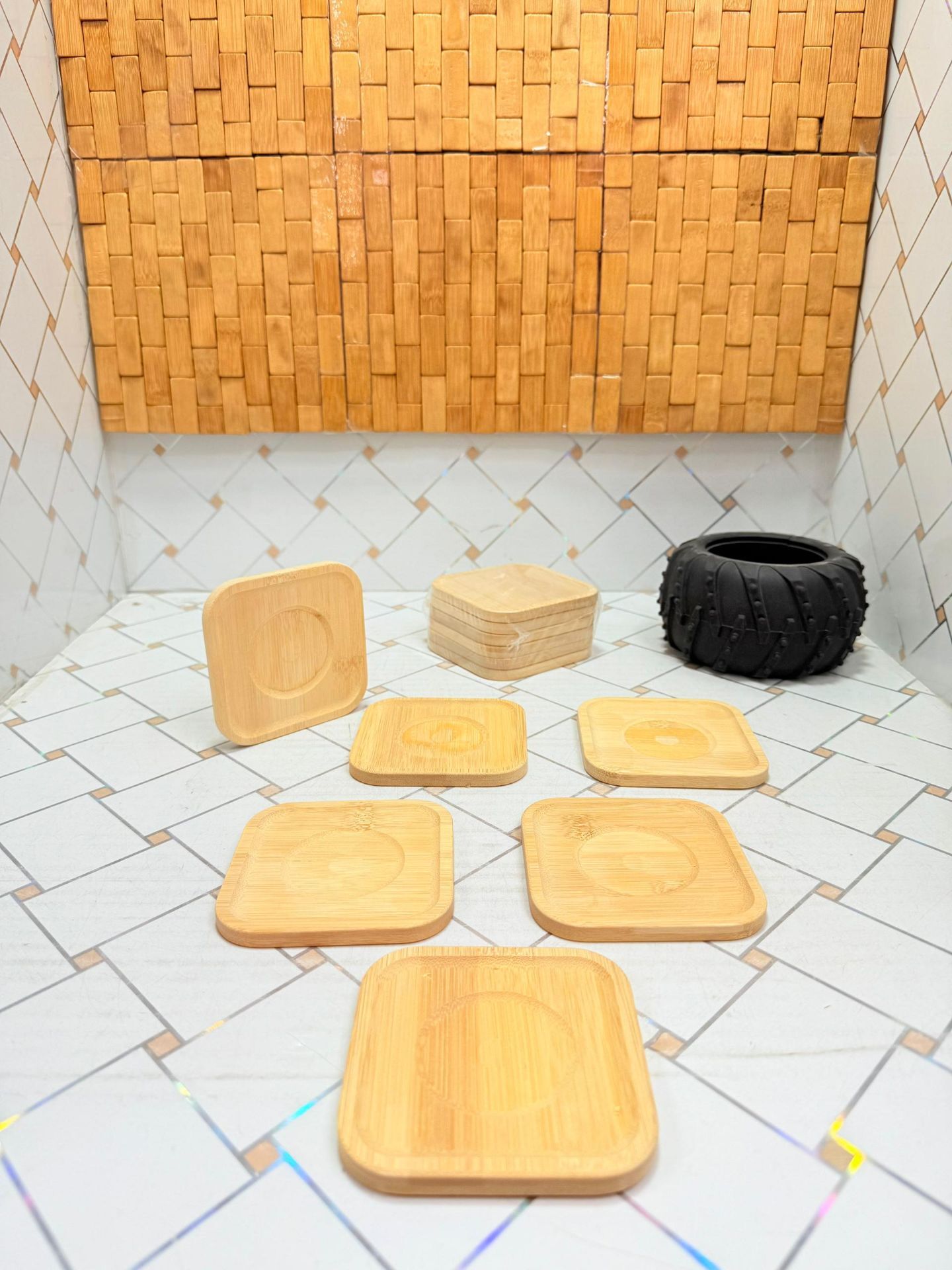 زیر لیوانی 6عددی چوبی بامبو مربع شکل 10 سانت